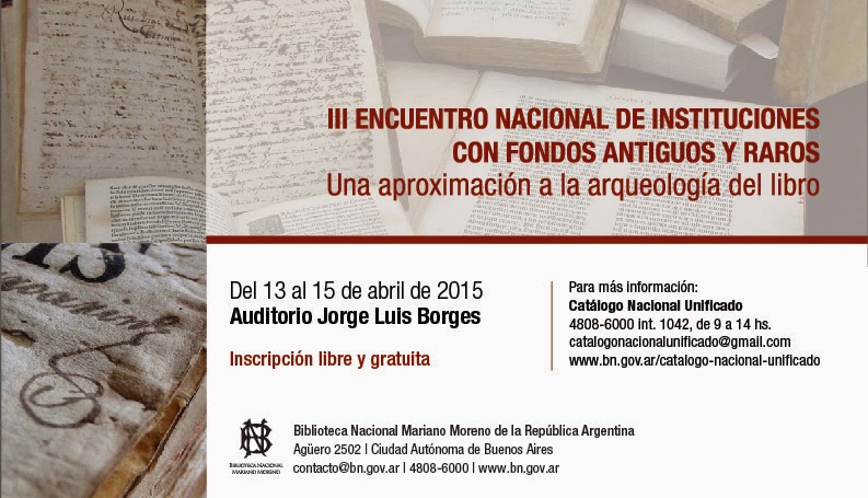 13 al 15 de abril en la Biblioteca Nacional de la República Argentina.